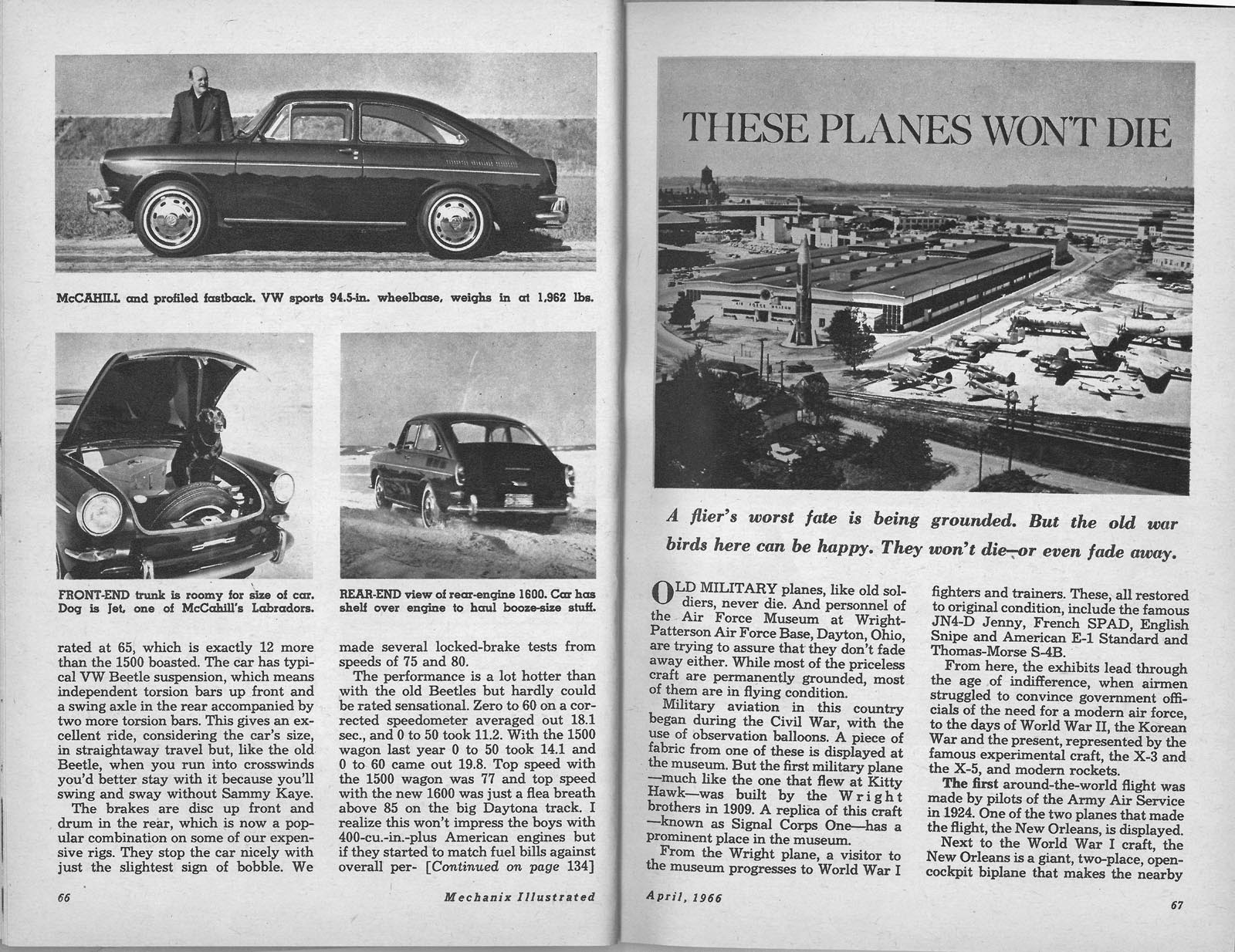 Yesterday, I posted some Road Tests from the March 1966 issue of Mechanix Illustrated featuring a Chevrolet Caprice and a Mercury Cyclone. These beasts suck down fuel like it was cheaper than water...oh, wait, it was! Power and size didn't always matter to everyone as the following road test of a VW Fastback will attest. Our reviewer, Tom McCahill pulls no punches as usual and has a wonderful way with words. Well worth a read, and don't forget to read the ads too.